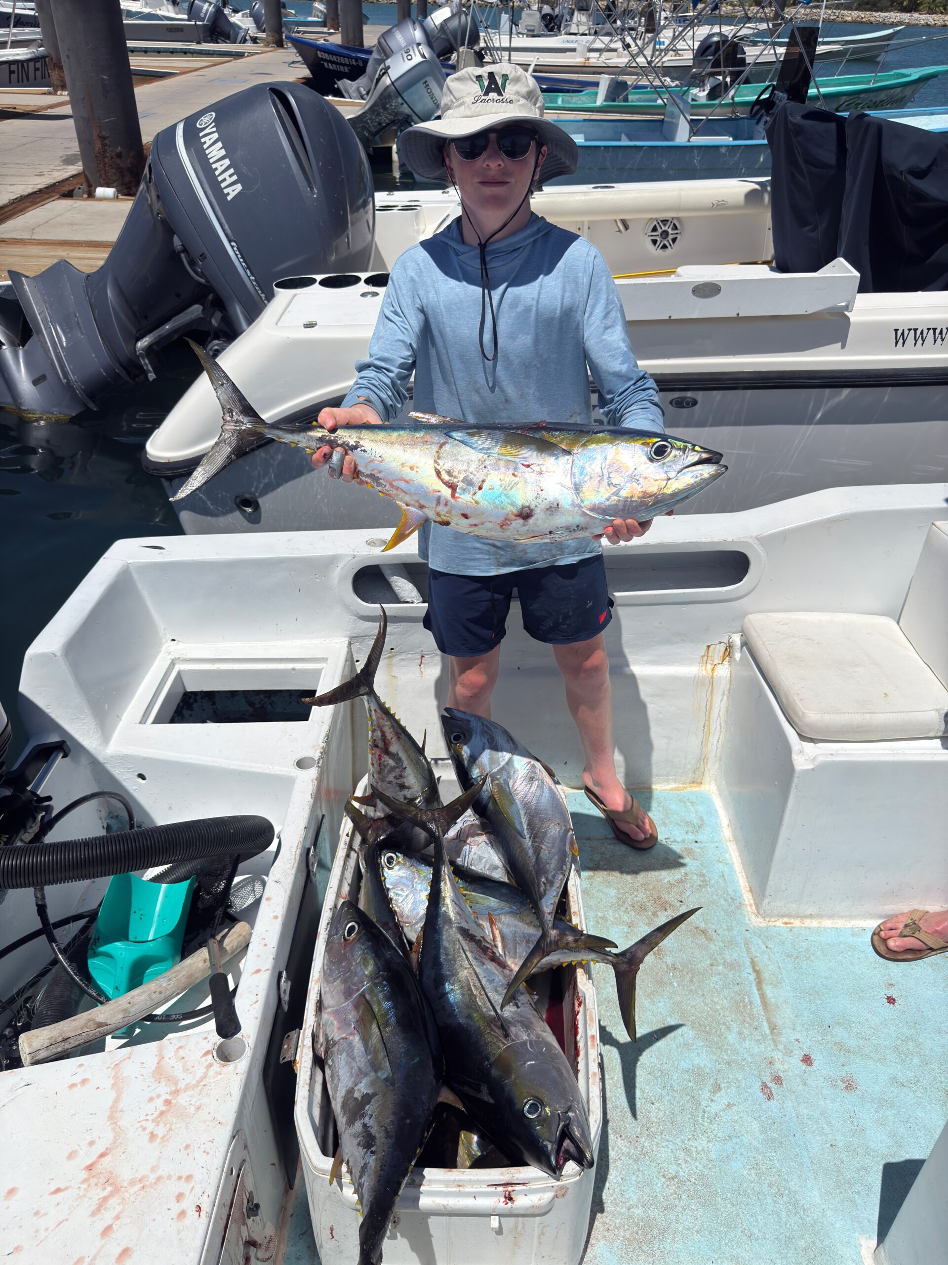 Posted on Matt HVerified Get your fish on! My friend took me on a fishing tour with Daliken and captain Poncho. It was fantastic...the highlight of my visit to Cabo. The two of us filled the boat with tuna. We were so busy pulling fish I thought my hands were going to break off at the wrists! I had the pleasure of meeting the owner, Jaime, who was super cool. My buddy has been using Jaime's boats for the last 9 years (and he promised a company shirt with the 10th year)! Tons of humpback whales abound to boot. I hadn't been fishing in years but look forward to another voyage next time in San Jose del Cabo. Thanks to all at Daliken for a great day!Posted on Bo from SeattleVerified One of the best saltwater/offshore fishing Charters in Los Cabos Daliken is my go to Saltwater/offshore charter fishing outfit in Los Cabos. I have fished with them for years. All of their Captains have a ton of experience being from the area. The waters near San Jose del Cabo are loaded with many pelagic species and Daliken will give you the best chance at getting a prize fish. What you will fish for depends on the time of year, my most recent trip the Tuna were biting and we were steady bit from sunrise until after lunch. Great company, great captains, fish with confidence when you chose DalikenPosted on johnny mVerified Lovely experience! Had a great time out on the water! Caught a variety of fish with our guides help! Two huge tuna were by far the finest catch of the day!Posted on red rVerified 1st class and a great vslue A great trip with captain and his son as mate. Glassy smooth sea, trolled for Wahoo, chunked for tuna but there were none around. 1st class boat with all safety gear, 1st class equipment. If you want, your catch can be cleaned at the port and you can take some - or all of it - home or to your hotel or a restaurant for cooking.Posted on Micheal sVerified Perfect fishing Perfect experience. Ruben didnt speak a lot of English but he was very nice and we caught a lot of fish for a small period of time. Prices was also great and you get all the fish cleaned and fillet.Posted on Jorge AVerified We’ll Be Talking About This Forever! I honestly don’t even know where to start. We went out today on the 28ft boat with Captain Pancho, and from the moment we left the marina, you could tell he really knows the ocean. We came out hoping for a good day… but we ended up fighting a 300-pound tuna — something I’ll remember for the rest of my life.This wasn’t luck. Pancho knew exactly where to move, how to follow the birds, how to work the currents. When that fish hit, it was game on. The fight lasted almost two hours. The captain and deckhand guided us through every step, stayed calm the whole time, and kept us going when our arms were done.When we finally brought that tuna on board, everyone at the dock stopped to look. It didn’t feel real.If you’re looking for real fishing, not just a boat ride… this is it. Professional crew, great attitude, solid gear, and a captain who truly knows what he’s doing.Thank you Pancho and thank you Daliken. We’ll be back for sure.Posted on Bradley SVerified Great Day! Fantastic day. Weather messed us up on the originally planned day but Jamie figured it out. Went out the following day and hooked plenty of 🐟 for the freezer. We come to Cabo frequently and will always fish with this team!Posted on Tracy MVerified Another Unforgettable Trip with Daliken Sportfishing! We had another amazing fishing experience with Daliken Sportfishing — they are our go-to every time we visit San José del Cabo, and they never disappoint. In September, we went out on two trips: one targeting tuna, and the other going after mahi and marlin. Both days were an absolute blast!The first trip was all about the tuna — fast-paced, non-stop action! The second trip was even more memorable. We went out on a smaller boat with Captain Pancho, and it turned out to be the most unforgettable fishing trip of our lives. We landed a HUGE blue marlin, followed by a striped marlin. Truly incredible.Captain Pancho and his son (who is also a captain) were the perfect team — calm, composed, and total pros. Their professionalism made the whole experience even more special.I can't say enough great things about the entire Daliken team — from the owners and managers to the captains and crew. They go above and beyond every single time. Can’t wait to fish with them again!Posted on Juan Pablo Barragán SánchezVerified Amazing Experience with Daliken Sportfishing in San José del Cabo We went out with Captain Ulices, and from the very beginning, his knowledge and dedication were clear. He took us straight to the right spots, and we had an excellent day of fishing. The crew was very friendly and professional, making the whole trip enjoyable.One of the best parts was that when we returned to the marina, they vacuum-packed all of our fish—super clean, fresh, and ready to take home. It made the whole experience complete: unforgettable fishing and the peace of mind of keeping our catch in the best condition.I highly recommend Daliken Sportfishing if you’re looking for a safe, professional, and authentic fishing trip in Los Cabos. We will definitely be back!