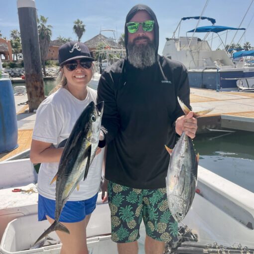 Yellowfin tuna between 20–50 lb are actively feeding early morning. Larger ones have been seen deep-drifting around Iman and San Luis. Striped marlin and wahoo remain strong around temperature breaks, while cubera snapper continue to hit on structure. Shore anglers still report a few roosterfish opportunities at dawn.